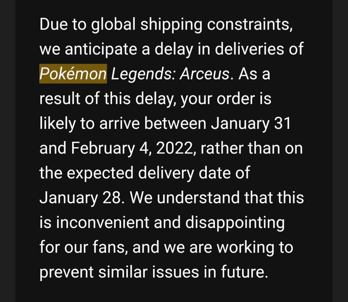 One thought on “Physical Pre-orders Delayed for Pokemon Legends Arceus”